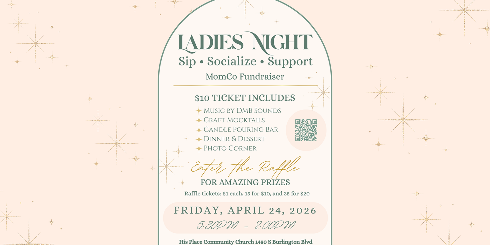 A Ladies’ Night fundraiser is coming up on Friday, April 24th from 5:30 to 8:00 pm in the Fellowship Area. This event will support MomCo, a ministry here at His Place that creates community and encouragement for moms with young …