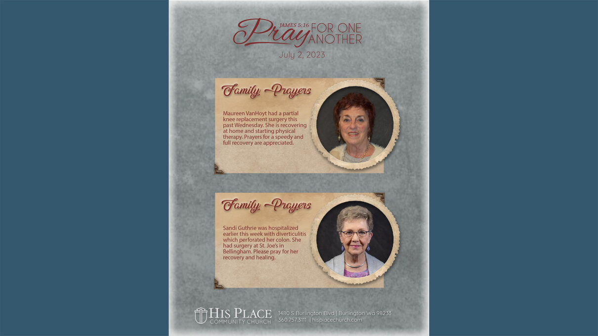 His Place Church July 2, 2023 Pray For One Another – July 2, 2023 This week’s handout Click here for this week’s Pray For One Another (pdf)