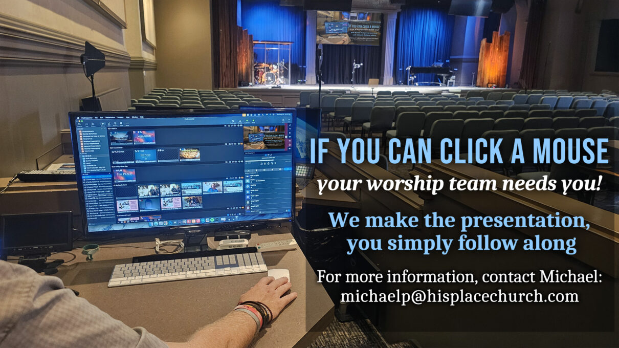A few new helpers are needed to join our tech team on Sunday mornings. Volunteers will help run ProPresenter, the program we use for lyrics and slides during worship and sermons. No special skills are required—if you can point, click, and follow along, you can learn! Training is provided, and you’ll always have support as you get started. This is a great way to serve behind the scenes and help keep worship running smoothly. If you’re interested, stop by the tech booth this Sunday and talk to Michael Pedrosa to learn more.