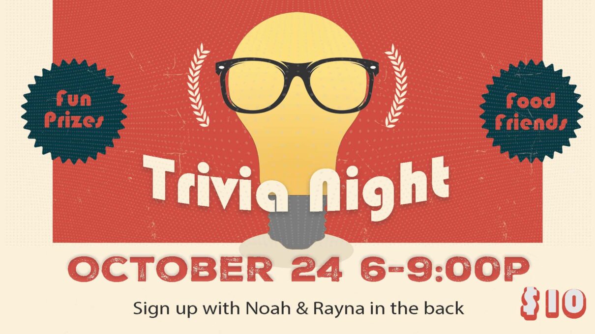 Let’s get quizzical! Put on your thinking caps and join us for a Trivia night at His Place Church. Pastor Noah will be your quiz master on Friday, October 24th from 6:00 to 9:00 pm. Tickets are $10 per person, for up to six members per team. Don’t have a team? No problem – we’ll help find ya one! We’ll have raffles, prizes, fun, and fellowship. Dinner will be provided and childcare will be available for $7 bucks a kid! Visit the back table this Sunday to register.