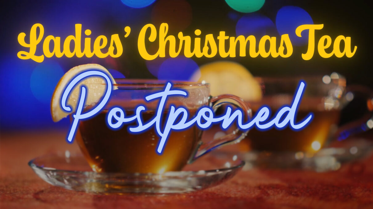 Our Ladies’ Christmas Tea, scheduled for this Saturday, has been postponed to January due to weather conditions. The new date and time will be announced as soon as it’s available.