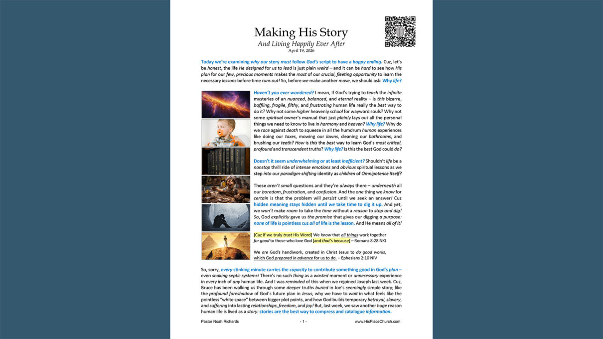 His Place Church Yesterday Making His Story: And Living Happily Ever After Sermon transcript Click here to view “Making His Story: And Living Happily Ever After” (pdf)