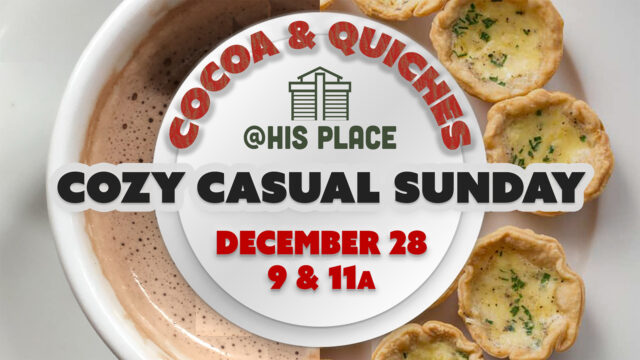 Join us for a Cozy Casual Sunday on December 28th at both morning services! Invite your fam and friends to this laid-back service, with a cocoa bar and a cozy, casual message! Free hot cocoa and quiches will be served …